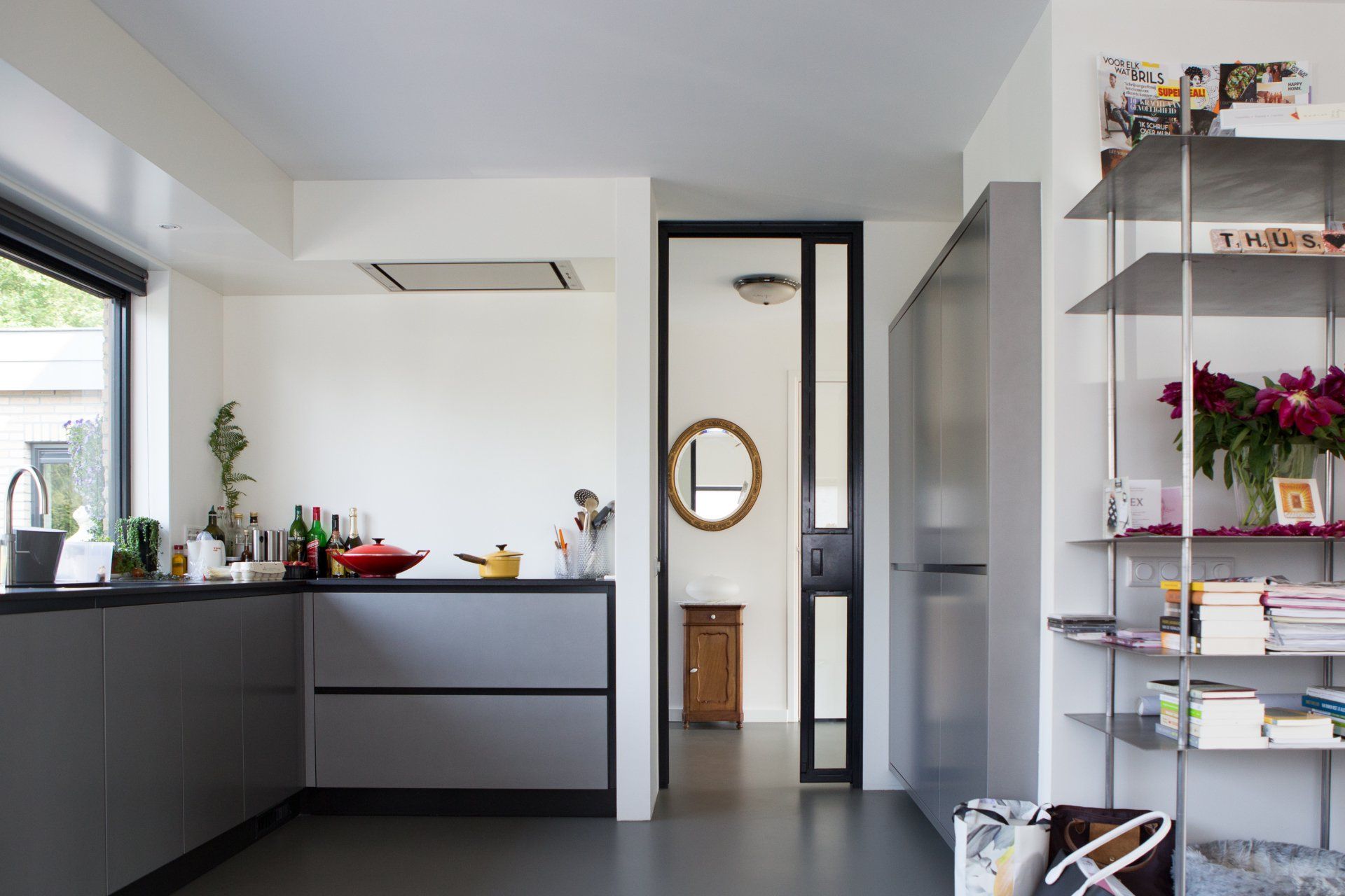 De binnenkant heeft een heel nieuwe uitstraling gekregen. Donkere kleuren hebben plaats gemaakt voor een lichte basiskleur voor de wanden, plafonds en kozijnen. De keuken, de bijkeuken, de badkamermeubels, kastenwanden en de werkplek zijn vernieuwd en gerealiseerd door Mint Interieur.